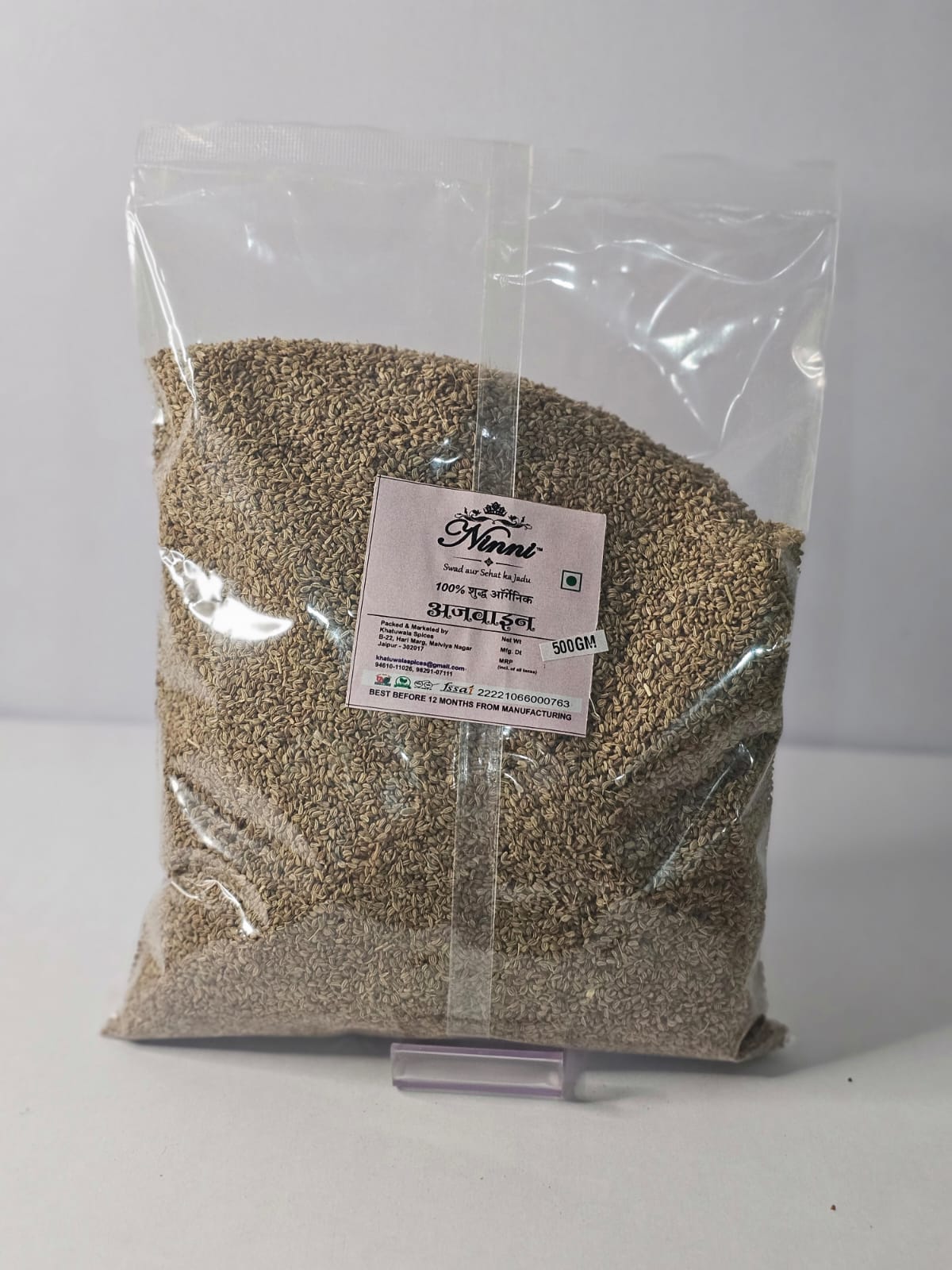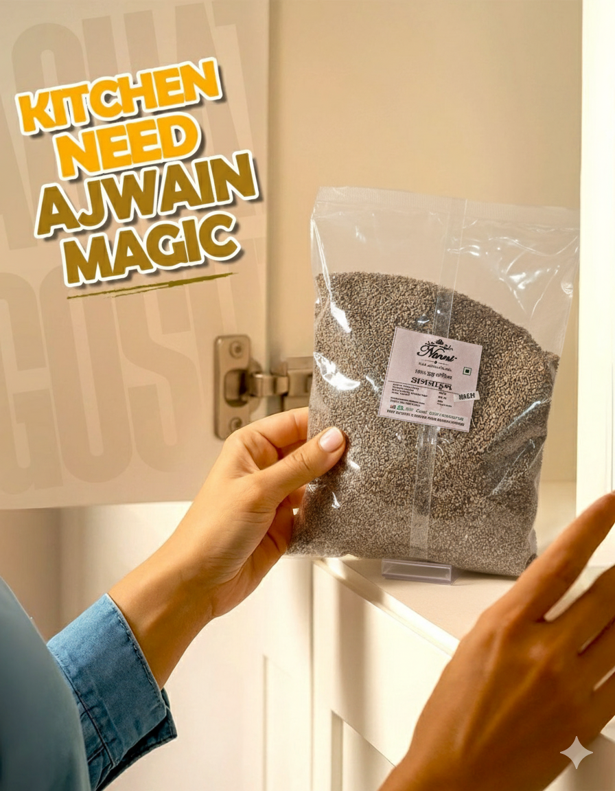 - Homemade ajwain (carom seeds) are thoroughly cleaned and sun-dried to preserve their sharp, thyme-like aroma and strong, slightly bitter taste. A staple in Indian kitchens, ajwain is widely used in parathas, pakoras, curries, pickles, and digestive mixes. In Ayurveda, it is prized for its ability to aid digestion, relieve gas and bloating, and act as a natural remedy for cold, cough, and acidity. Its essential oil, thymol, gives ajwain its characteristic pungency and medicinal value.