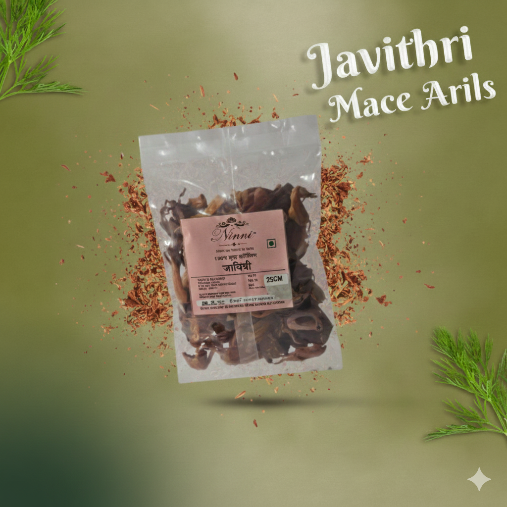 Homemade javetri (mace) is the dried outer covering of nutmeg, with a warm, aromatic, slightly sweet flavor. Used in Mughlai curries, biryanis, sweets, and masala blends.